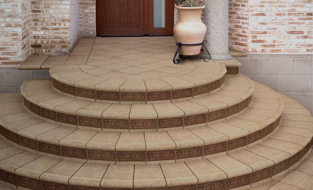 Для облицовки крыльца из бетона обычно используют уличную керамогранитную напольную плитку с рифленым рисунком