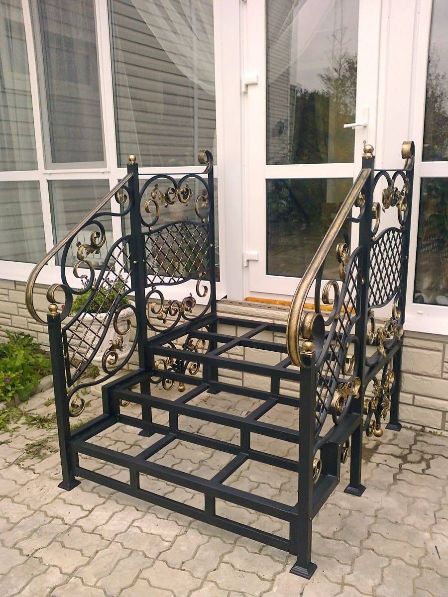 - Металлическим. Данный вариант наиболее эстетичен, прочен и долговечен. Ему не нужен массивный фундамент: весит он довольно мало. А кованые перила и ажурные ступени придают ему дополнительную лёгкость и элегантность. Стоит это удовольствие дорого. И изготавливает его мастер, причём в течение достаточно большого срока. Зато на его установку потратятся от силы два-три дня.