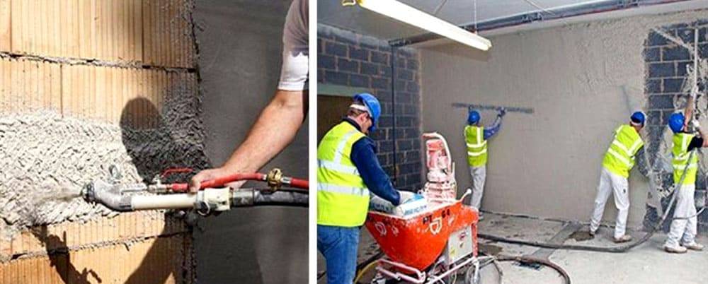 В целом машины актуальны для проведения наружных, внутренних работ, главное, правильно выбрать смесь. Если при внутренних работах можно использовать любые варианты отделочных материалов, для наружных актуальны цементные составы, поскольку именно они демонстрируют оптимальный набор эксплуатационных характеристик.