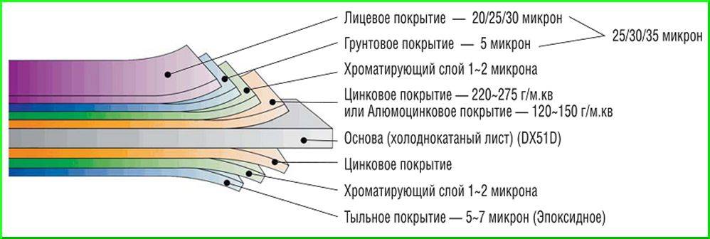 Создается из оцинкованных стальных листов по технологии холодного проката. С внешней стороны материал покрывается защитной полимерной пленкой, позволяющей максимально защитить основу от пагубного воздействия влаги и, как следствие, предотвратить возникновение коррозии.