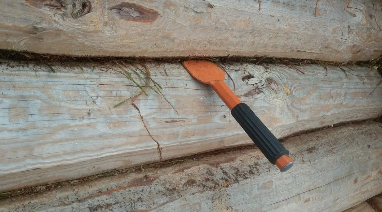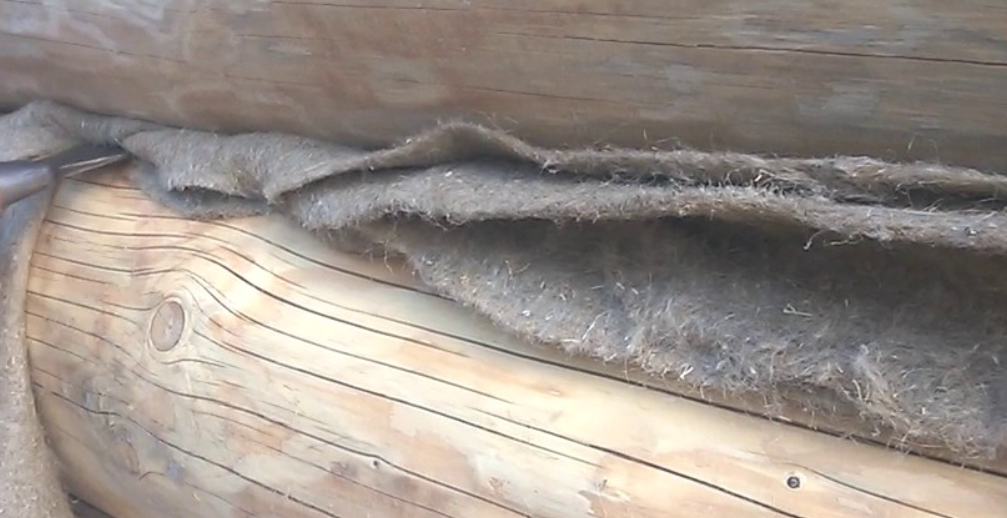 Для утепления межвенцовых щелей сруба, сложенного из оцилиндрованного бревна, использовали мох. В нём содержится много сфагнола, благодаря чему мох препятствует загниванию дерева. Один из недостатков этого природного материала — сложность в заготовке и укладке.