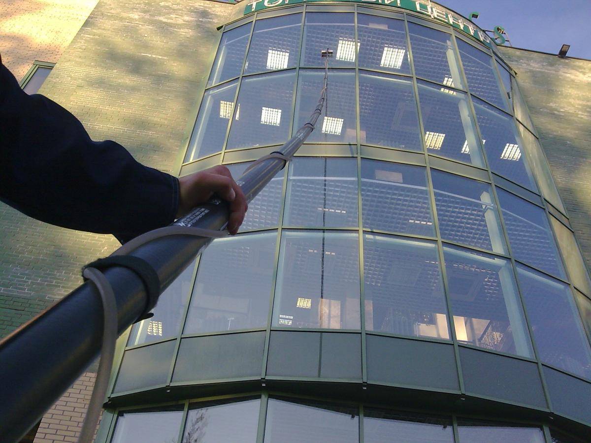 Мойка стеклянных фасадов с земли при помощи телескопической штанги