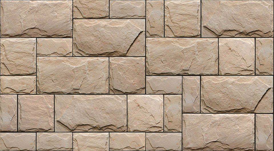 - ровное покрытие, обладающее незначительным рельефом, получается благодаря фасадной отделке песчаником – его изготавливают в качестве пластин, которые заметно сохраняют натуральный рельеф;