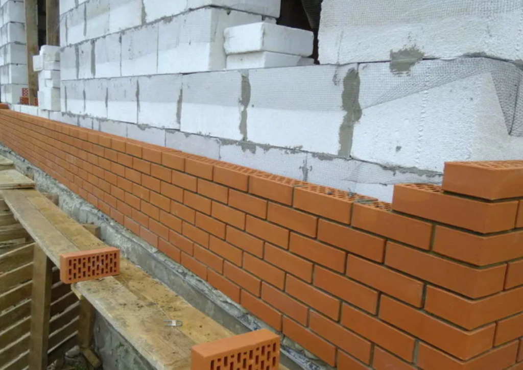 Обкладка дома из ячеистого бетона кирпичом