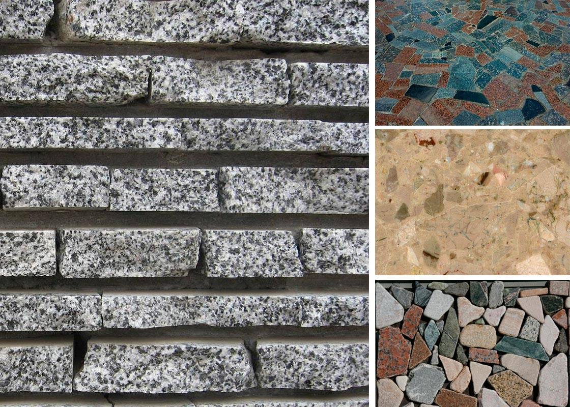 Искусственные виды камня, созданные методом расплава или смешивания различных композитных материалов, имеют гораздо более низкую цену, но декоративные и эксплуатационные качества вполне удачно способны конкурировать с естественными видами камня.