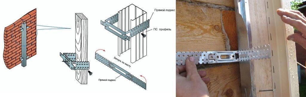 Если производится утепление и облицовка дома сайдингом в северном регионе, то теплоизоляционный слой должен быть минимум 100 мм. И здесь есть сложность, потому что усики прямых подвесов имеют крепежную длину 80 мм. То есть утеплитель толще. В этом случае поступают следующим образом: