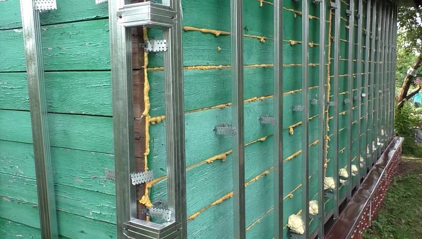 - Оконные и дверные проемы обшивают по периметру. Металлическая обрешетка для сайдинга готова.