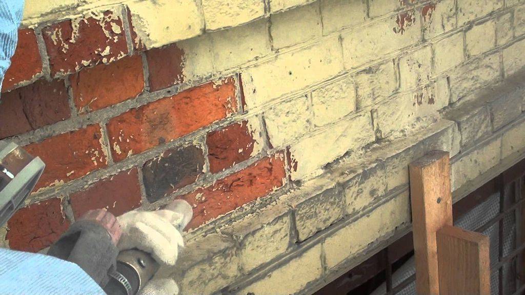 Очистка кирпичной стены пескоструем от лакокрасочного покрытия