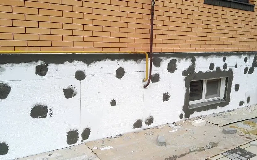 - Выполняется финишная отделка. Защита фундамента будет максимально надежной, если под декоративной облицовкой размещают гидроизоляцию.