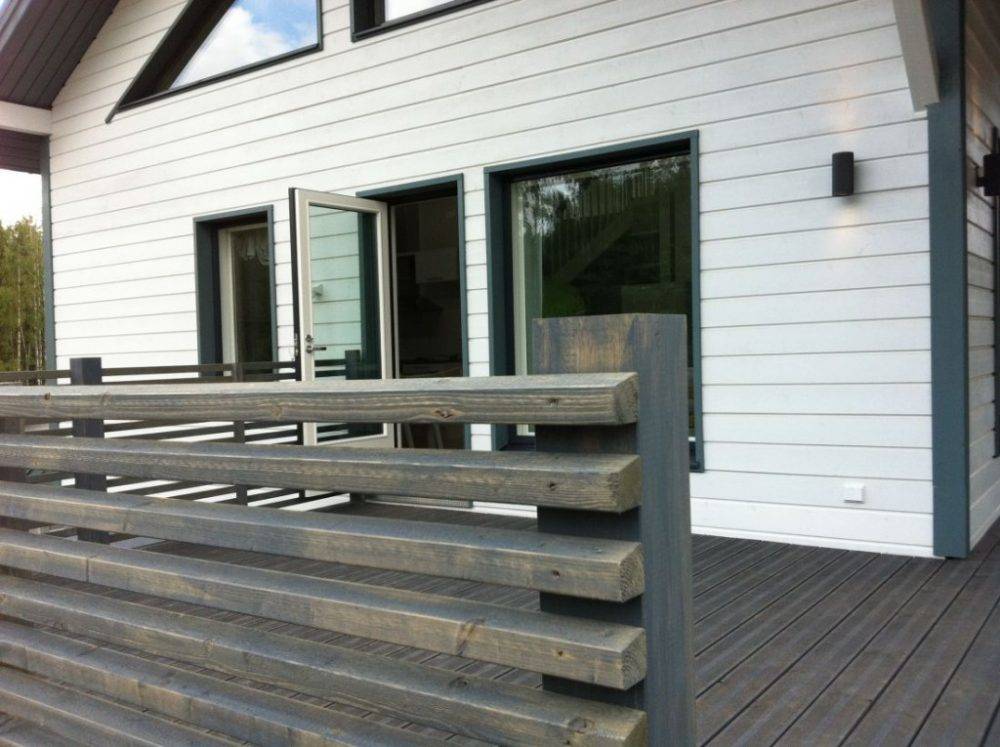 Обычно в Скандинавии отделка каркасного дома снаружи — это качественная деревянная доска или имитация бруса хорошего качества. Причем фасадная сторона доски должна быть с ворсом для лучшего впитывания краски, а все остальные части — строганные. Такая наружная отделка каркасника выглядит очень достойно, хотя по времени монтажа такой доски она занимает достаточно долгое время.
