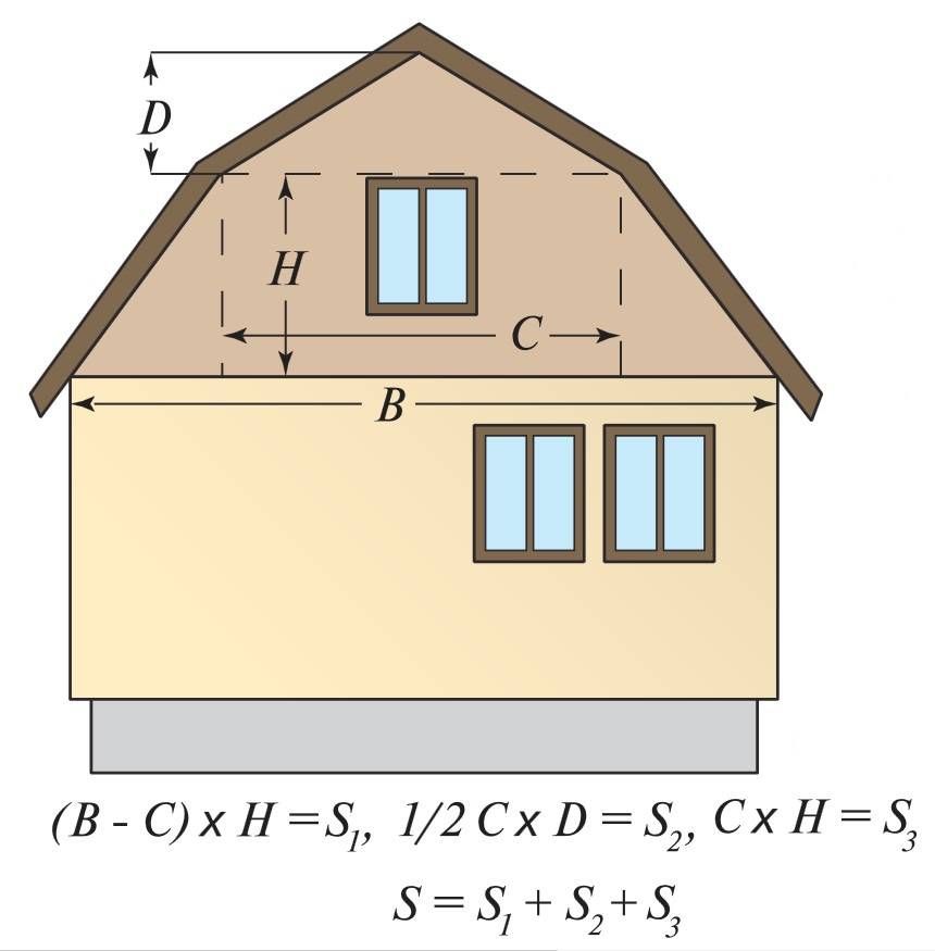 На доме с мансардой вычислите общую площадь фронтона. Для проведения правильных расчетов, фронтон сложной конфигурации разбейте на правильные геометрические фигуры. Вычислите площадь каждой фигуры по формуле. Сложите полученные результаты. При покупке панелей добавьте 5-7% на обрезки. Рабочую площадь панели вы можете узнать у консультанта в магазине.