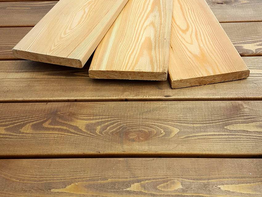 Планкен из лиственницы имеет более выраженную структуру и темный цвет