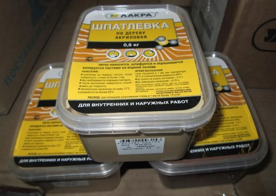 Группа компаний «Лакра» – один из ведущих отечественных производителей, специализирующийся на изготовлении материалов, предназначенных для декоративной отделки. В её каталоге присутствует акриловая смесь, представленная в разных, наиболее популярных древесных тонах. Шпаклёвка мелкозернистая, хорошо поддаётся обработке после затвердевания, тем не менее прочна и способна выдерживать значительные механические нагрузки.