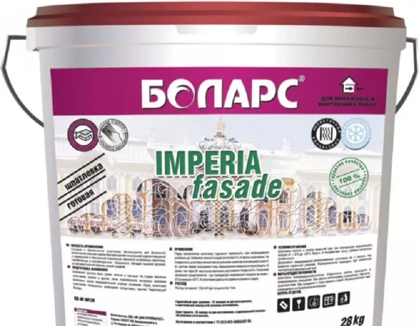 Боларс – один из крупнейших российских производителей, имеющий один из наиболее объёмных каталогов строительных и отделочных материалов. У него присутствует шпаклёвочный состав, способный выдерживать до 50 циклов глубокого замораживания и рассчитанный даже на использование в самых суровых условиях (до -40°С).