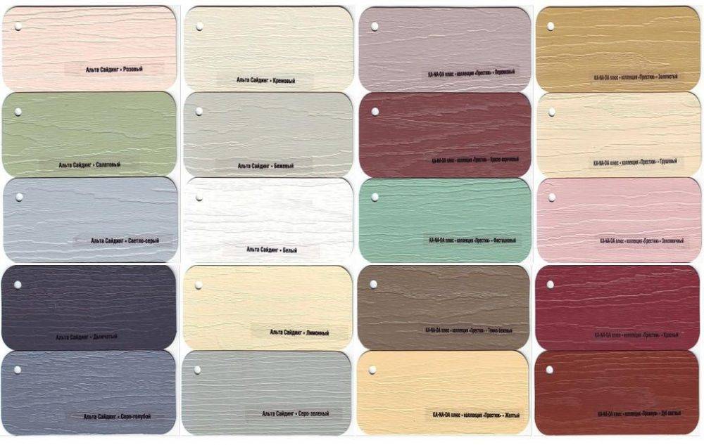 Самая широкая цветовая гамма у винилового и металлического сайдинга. Здесь присутствуют всевозможные цвета и оттенки – от нейтральных, приближенных к природным, до самых ярких и насыщенных. Исключение составляет цокольный сайдинг, расцветки которого более сдержанные, имитирующие природные материалы и кирпич. Палитра деревянного и фиброцементного сайдинга тоже очень широка, хотя яркие кричащие цвета в ней отсутствуют.