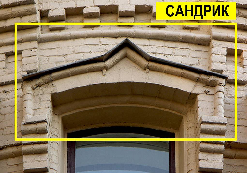 Карниз. Выступающая часть стены, грань кровли. Элемент визуально разделяет крышу и стены здания или делит горизонтально плоскость стен параллельно поверхности земли. Если карниз находится в нише, имеет небольшие размеры, треугольную, овальную или полукруглую форму, то, как правило, его называют сандриком. Основой карниза служит выступающая плита. Карнизы могут быть междуэтажными или венчающими.