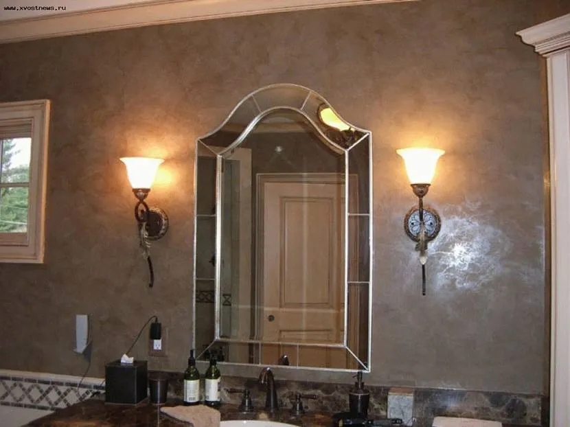 После того как оштукатуривание поверхностей окончено, их можно покрыть обычным лаком либо лаком с глянцевым блеском, с металлическими блестками. Для стыков между стенами и полом, стенами и потолком используются специальные плинтусы или багеты, которые можно подбирать под тон основной стены.