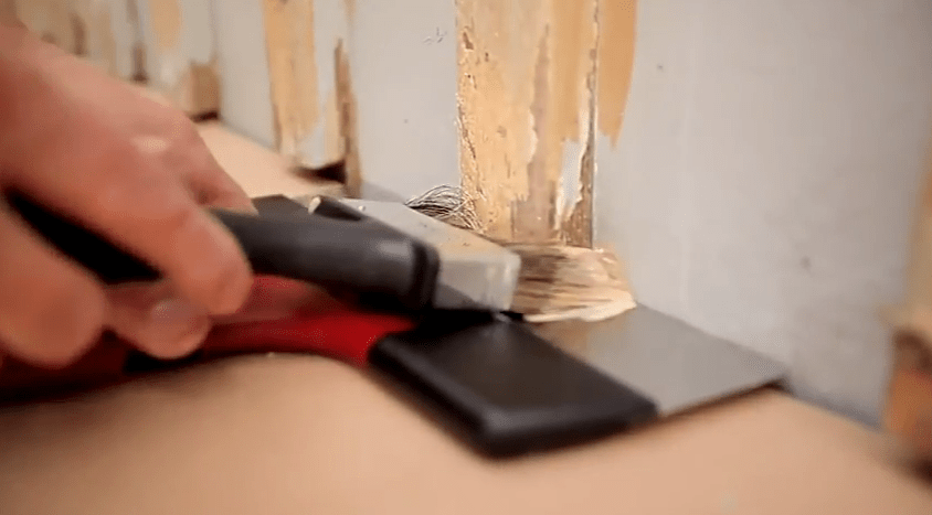 Механическое очищение. Методика эффективна при очищении ровной и гладкой поверхности. Скребок или шлифовальная машинка позволят избавиться лишь от тонкого слоя старой краски.