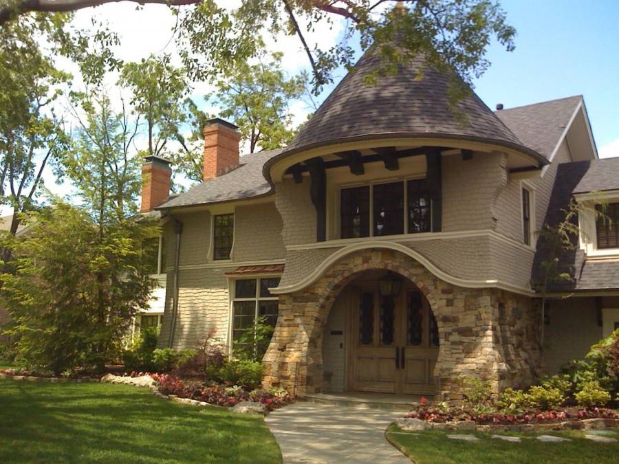 Классика. Чаще всего для создания экстерьера в представленном стиле используется трехскатная или двускатная конструкция. Но в последнее время также используют плоский вариант. Оформить такое решение довольно тяжело, так как нужно правильно выбрать оттенки покрытия стен и окантовку окон