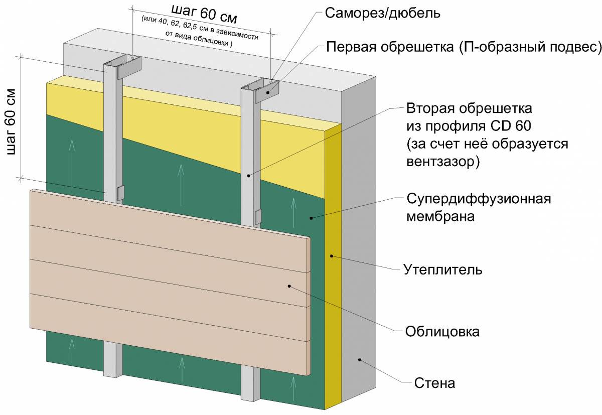 Общая схема несущей конструкции под монтаж сайдинговых панелей