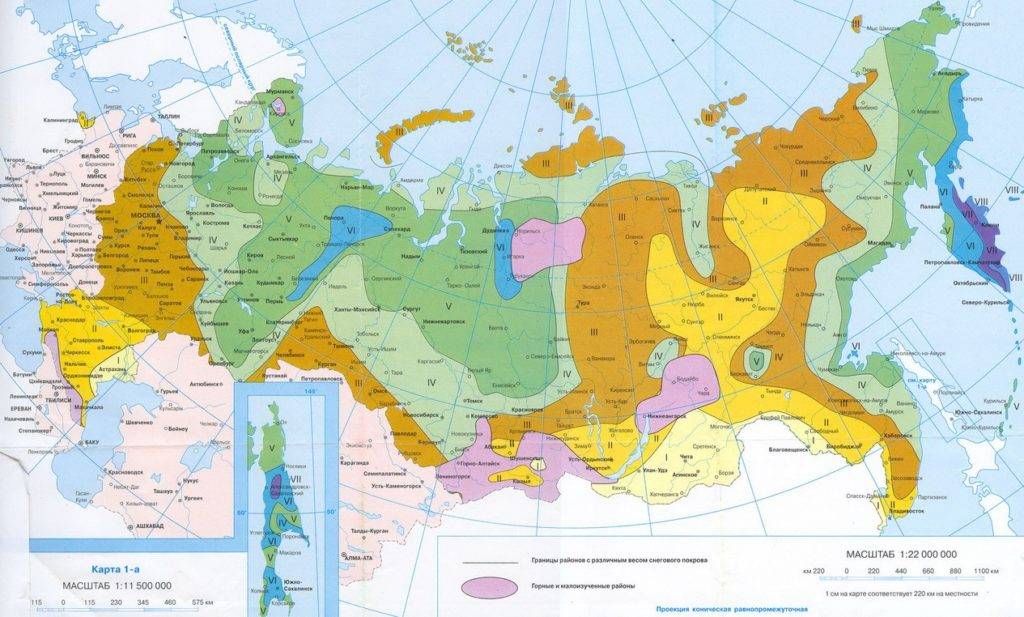 Карта зон снегового покрова территории РФ