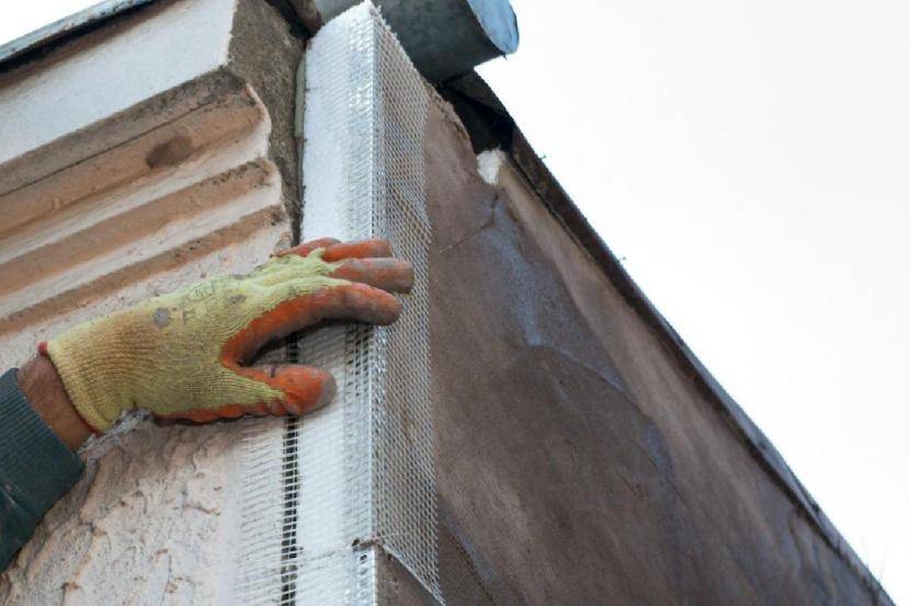 Для того, чтобы оштукатуренная поверхность пеноплекса была ровная, обязательно нужно крепить углы сеткой. Также оклеиваются откосы и проемы окон.