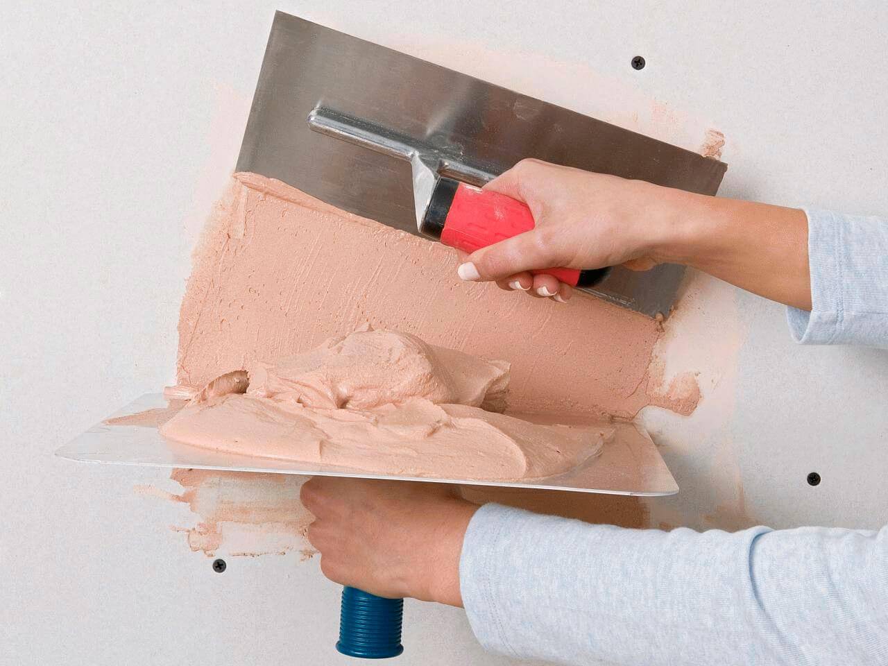 - Убрать имеющиеся трещины. Для этого походит гипсовая шпаклевка, потому что она быстро высыхает.
