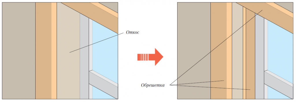 Рис. 11: Расположение финишного профиля сайдинга на обрешетке оконного проема