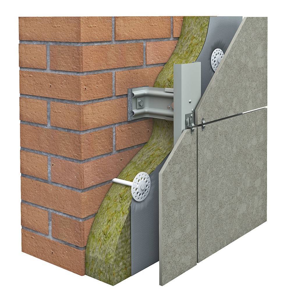 Один из вариантов фасадных подсистем: керамогранит на металлическом каркасе