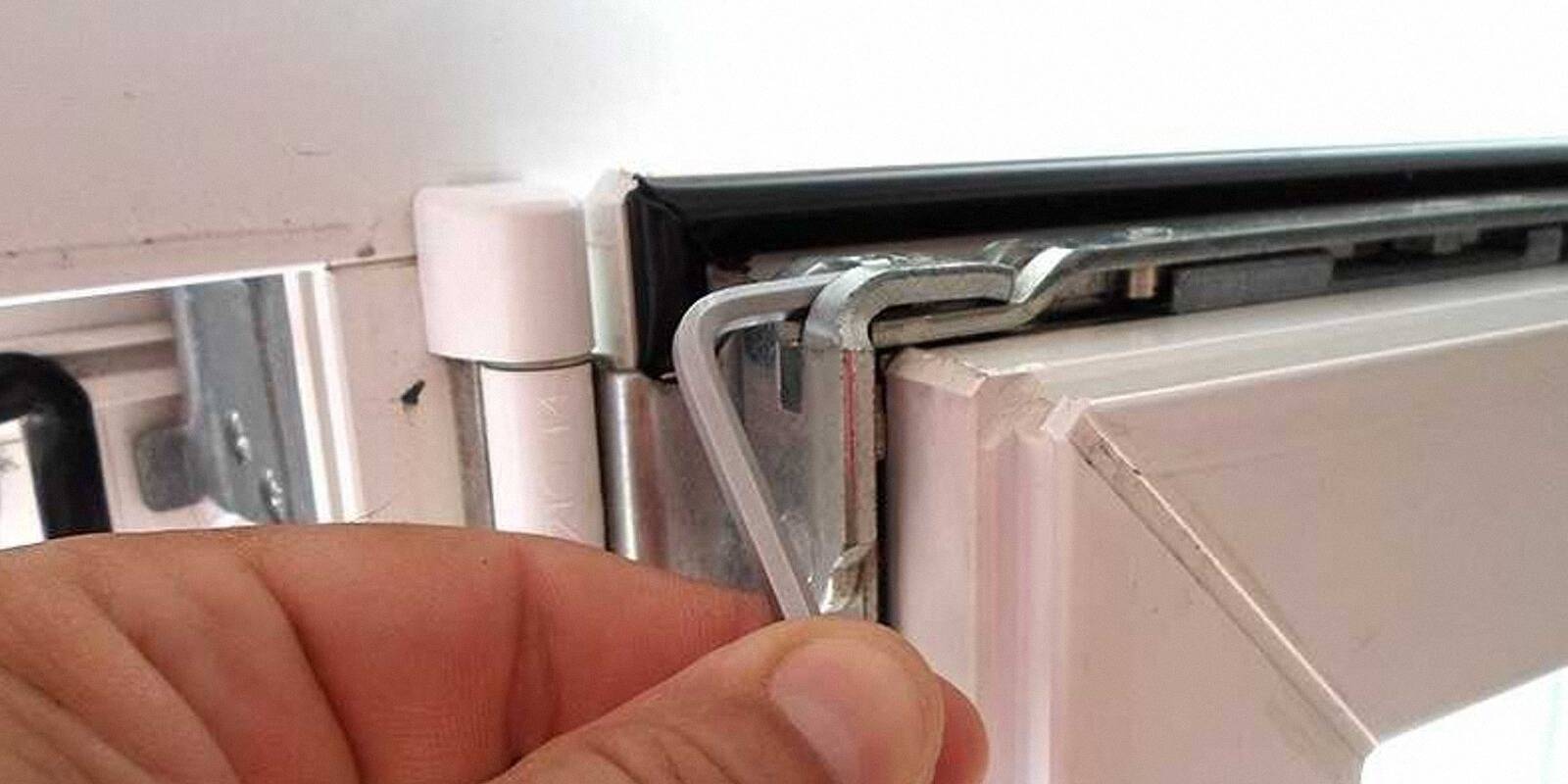Силу прижима можно отрегулировать на верхних и нижних петлях с помощью шестигранного ключа №4. Если вращать шестигранник по часовой стрелке, то створка будет прижиматься к петле, а против часовой – наоборот. Как это правильно сделать, расскажет видео в интернете.