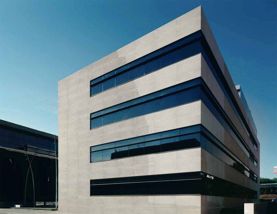 Вентилируемый фасад из керамогранита. Керамогранит — это искусственный материал, полученный путем прессования специальной смеси и последующего обжига. Керамогранит долговечен, прочен и устойчив к перепаду температур. Керамогранитные вентфасады отлично подходят для жилых, офисных и производственных зданий.