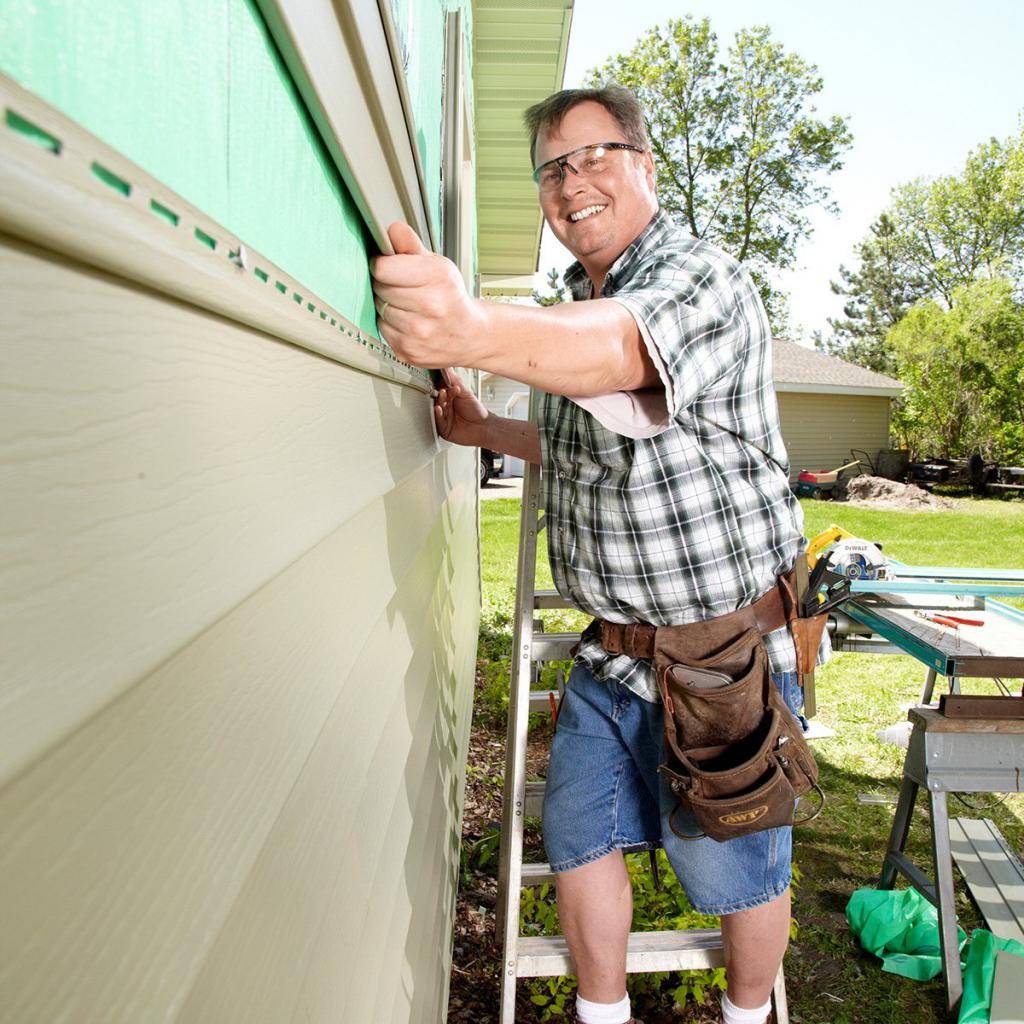 Бесспорным достоинством этого материала является то, что монтировать виниловый сайдинг можно без предварительного выравнивания стен. Вполне достаточно очистить от грязи или предыдущей отделки поверхность, удалить выступающие элементы (наличники, плинтуса, водостоки и т. д.).