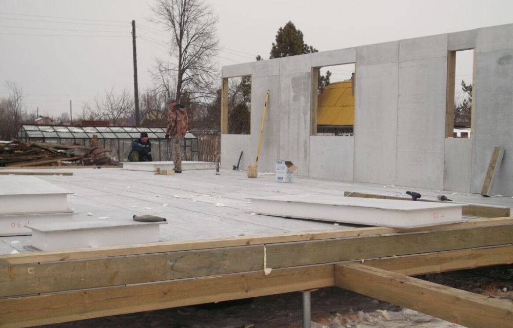 После этого укладывают панели перекрытия. Их фиксируют на основании с помощью анкеров. Расстояние между крепежами не должно превышать 2 м.